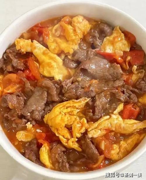 所需食材:牛里脊300 g、番茄3个、土鸡蛋4个、洋葱半个、蒜末1小勺、生抽2勺、蚝油1勺、白糖½勺、白胡椒粉¼勺、干淀粉1勺、小苏打⅓勺(可选)、盐、食用油适量。