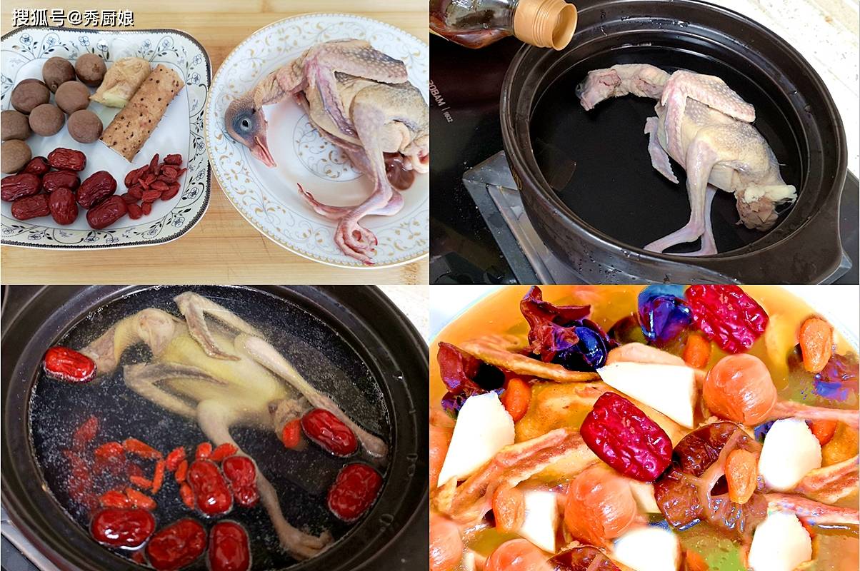 3. 将鸽子、木耳、山药、红枣、桂圆一起放入汤煲,加足量热水和两片姜。