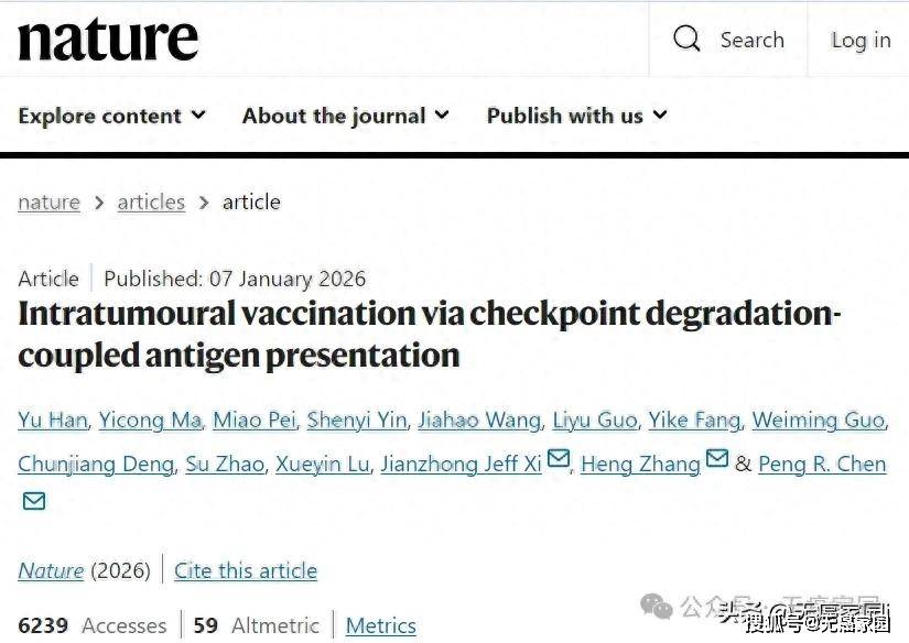 北京大学化学与分子工程学院的陈鹏团队,联合席建忠团队以及深圳湾实验室团队,于2026年1月8日在《Nature》杂志发表了一项突破性研究。