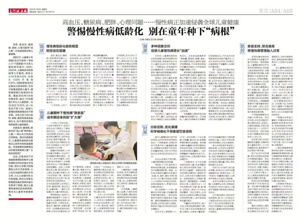 当前,高血压、糖尿病、肥胖等传统意义上的“成人慢性病”,正在以前所未有的速度向儿童青少年群体蔓延,构成全球性的公共卫生挑战。聚焦河南省内,儿童慢性病的流行状况同样不容乐观。