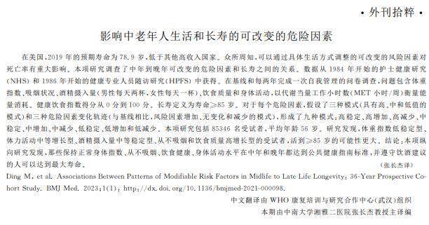 [1] 张长杰,影响中老年人生活和长寿的可改变的危险因素,中国康复,2023-05-25
