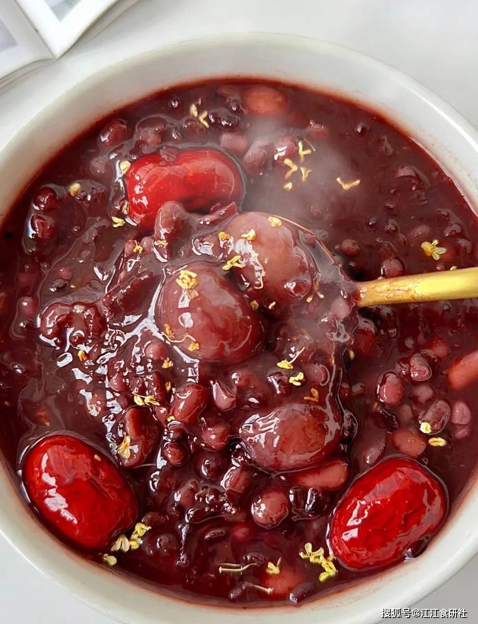 红豆起沙,黑米弹牙,桂圆肉甜润。