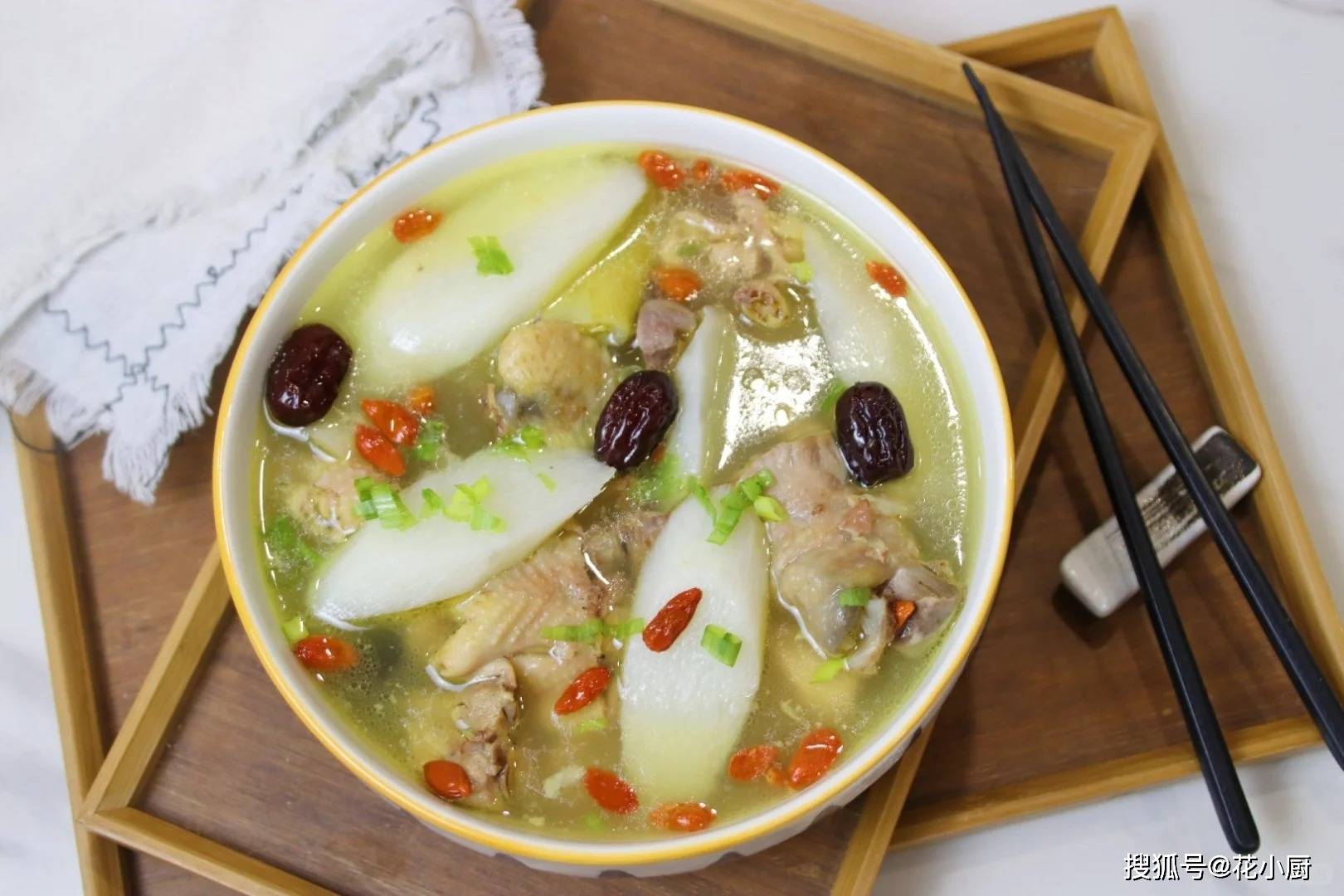 食材: 1000 克鸡肉、红枣10 来颗、一小撮枸杞子、500 克山药、清水、五片姜片、三段大葱、盐 1 勺