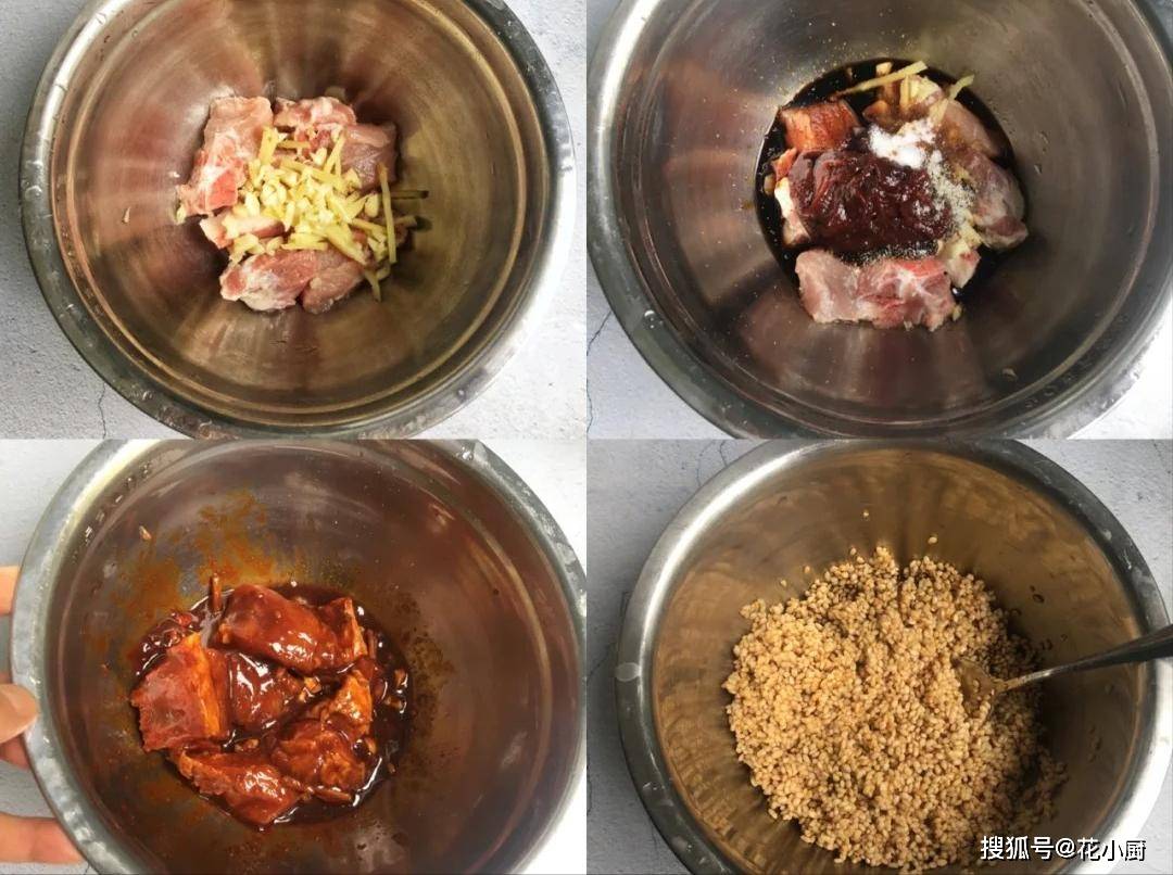 食材:1 碗糯米、1 根新鲜排骨、1 根玉米、5 克生姜、5 克大蒜、2 颗香葱、2 勺生抽、1 勺老抽、1 勺蚝油、1 勺辣椒酱、1 勺料酒、半勺糖、1 勺面粉、淀粉、1 勺油、少许盐