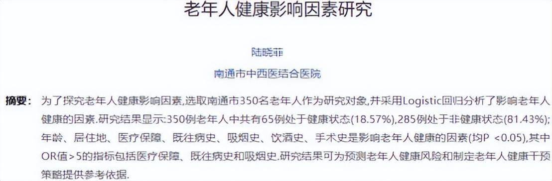 [1] 陆晓菲.老年人健康影响因素研究[J].延边大学学报(自然科学版),2025
