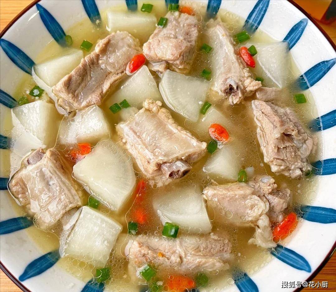 2. 白萝卜排骨汤:平补脾肺,固本培元