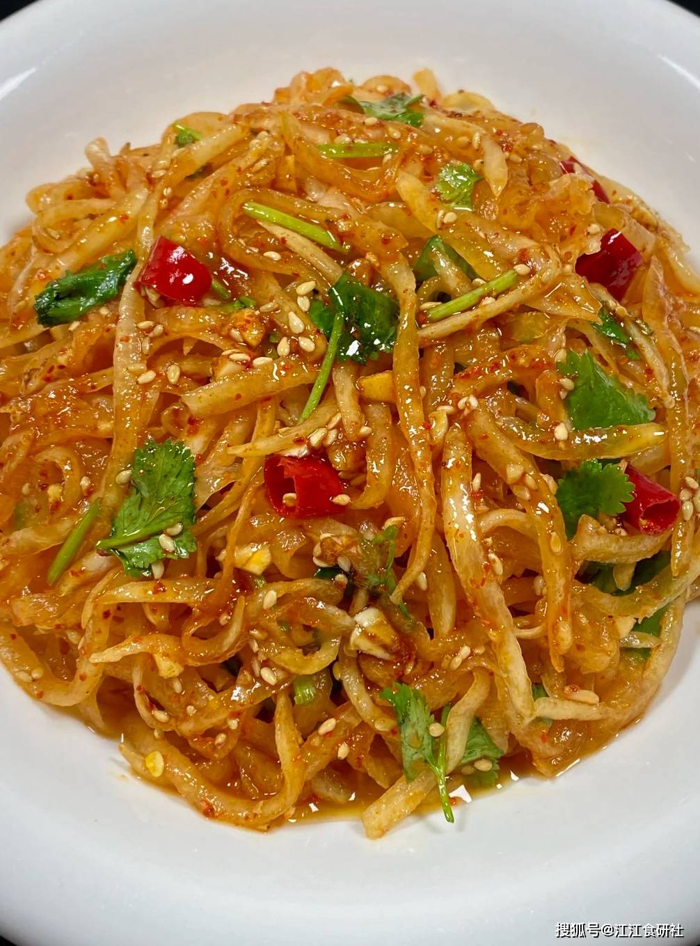 萝卜丝洁白脆嫩,挂着亮晶晶的汁水。