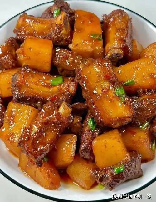 4. 加入土豆块,继续焖15分钟,直到土豆软烂、汁浓。那叫一个美味极了,泡椒的酸辣融入排骨,开胃又过瘾!