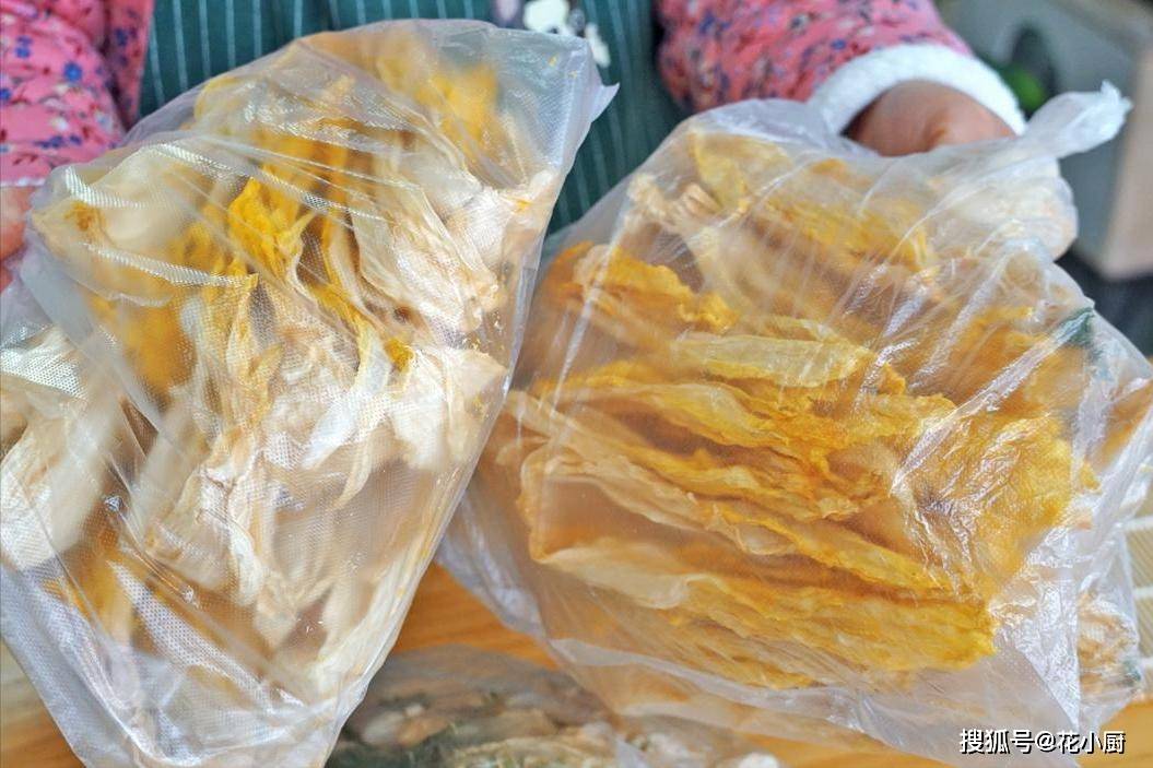7、晒干的包菜吃的时候要加点温水提前泡软,挤干水分后再切成小块块儿就可以了,吃的时候和五花肉粉条一起炖,放点盐、生抽、调味,出锅真的是超级香。