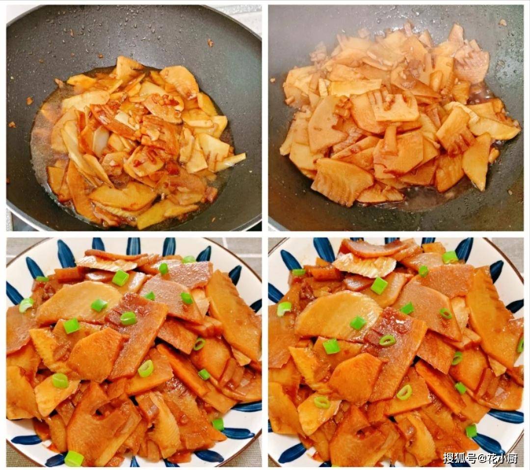 3、往锅里加适量的清水,水不用加太多,能没过笋片就行。然后盖上锅盖,开小火慢慢炖煮。这炖煮的过程中,笋片会吸收调料的味道,变得更加入味。咱们就耐心等着锅里的汤汁慢慢变少,开始收汁。等汤汁变得浓稠的时候,就可以根据自己的口味加点盐调味啦。喜欢咸一点的就多加点,口味淡的就少加点。最后再翻炒均匀,这道美味的油焖冬笋就可以出锅装盘啦!
