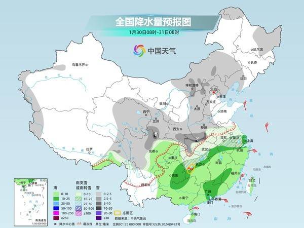 明天,新疆北部、西藏东部、内蒙古西部、黑龙江中东部、吉林东部、西北地区中东部、华北大部、黄淮西部、湖北北部、川西高原北部等地部分地区有小到中雪或雨夹雪,西藏东北部、陕西中部、山西南部、河南西部、湖北西北部等地部分地区有大到暴雪。陕西东南部、湖北西部部分地区有冻雨。陕西南部、江淮、江南、西南地区东部、华南大部等地部分地区有小到中雨。