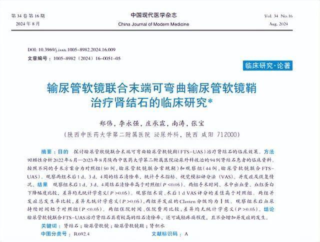 郑伟,李永强,庄承霖,等.输尿管软镜联合末端可弯曲输尿管软镜鞘治疗肾结石的临床研究[J].中国现代医学杂志,2024,34(16):51-55.