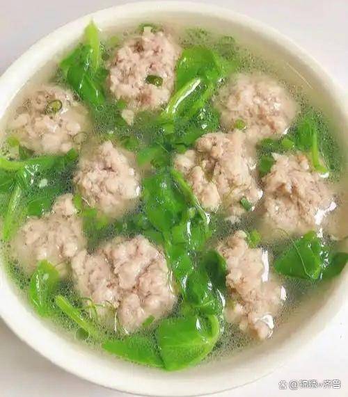 2. 手上沾点水,抓点肉馅搓成丸子。锅里放冷水,开小火,把丸子慢慢放进去煮。