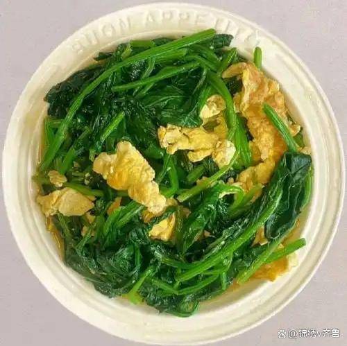 6、出锅装盘即可上桌享用。这样做出来的菠菜色泽翠绿诱人,清香脆嫩,营养好吃哦。