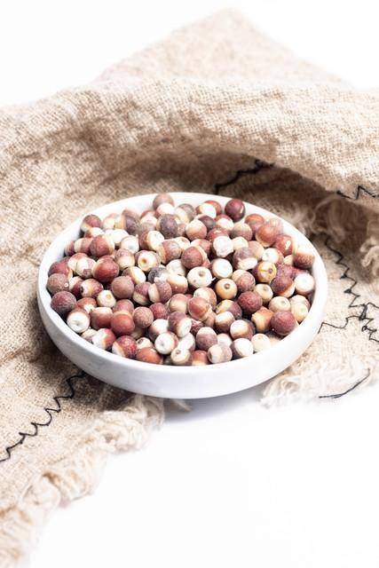 芡实的果实是圆球形,外壳坚硬,表面布满尖刺,成熟后外壳会开裂,里面的种仁就是我们日常食用、调理的芡实,种仁呈圆球形,颜色多为白色或淡黄色,质地坚硬,无异味,这也是我们用到的核心部分。