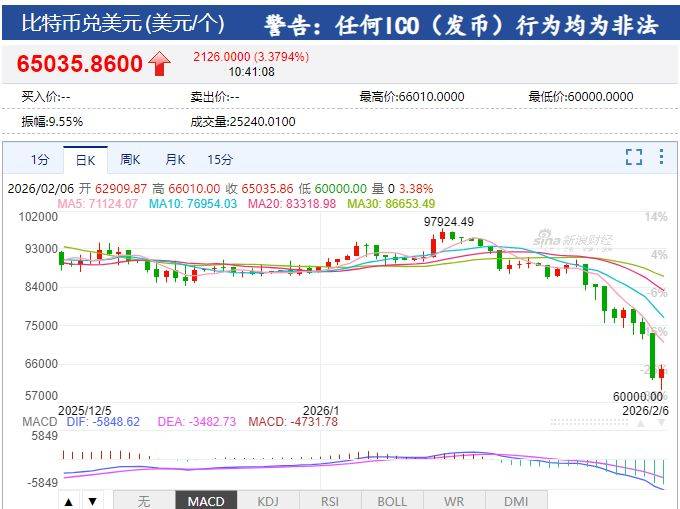 现货黄金、白银“深V”反弹!比特币来回割,回到65000美元上方,超59万人爆仓
