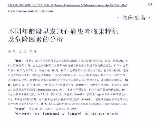 曲政.不同年龄段早发冠心病患者临床特征及危险因素的分析, 心 肺血管病杂志, 2024-05-26