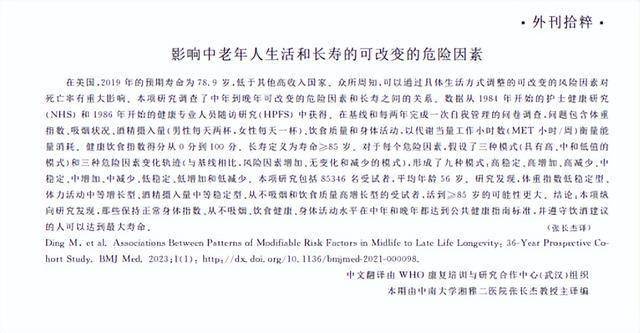 张长杰,影响中老年人生活和长寿的可改变的危险因素,中国康复,2023-05-25