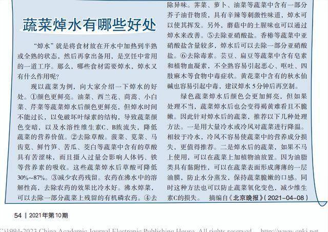 [1]蔬菜焯水有哪些好处[J].湖南农业,2021