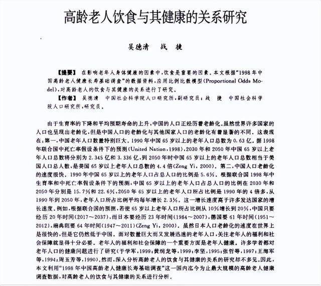 [1]吴德清.高龄老人饮食与其健康的关系研究 , 中国人口科学, 2001-12-30
