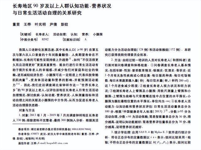 [1]董昱.长寿地区 90 岁及以上人群认知功能、营养状况与日常生活活动自理的关系研究,2021-05-15