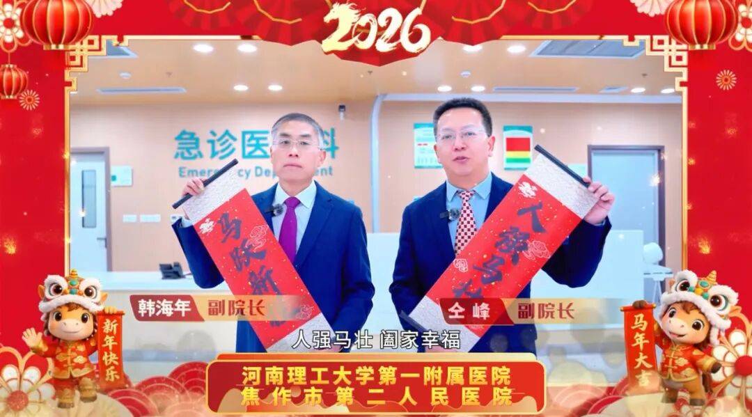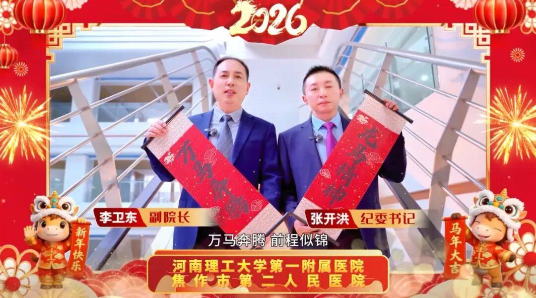 值此2026丙午马年新春来临之际,河南理工大学第一附属医院、焦作市第二人民医院恭祝大家,新春快乐,阖家幸福,龙马精神,马到安康!