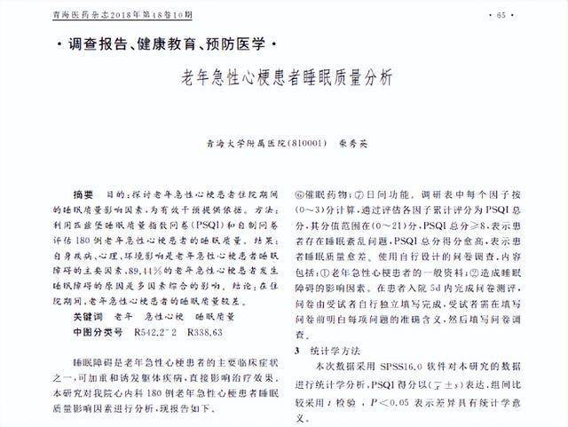 [1] 柴秀英.老年急性心梗患者睡眠质量分析, 青海医药杂志, 2018-10-20