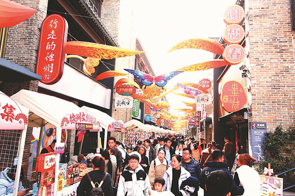 2月22日,市民游客在徐州彭城七里参观游玩。 蒯创 摄 视觉江苏网供图