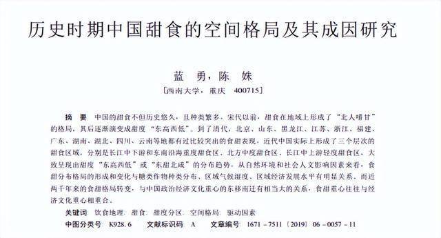 历史时期中国甜食的空间格局及其成因研究,蓝勇,陈姝,云南大学学报(社会科学版),2019-11-13