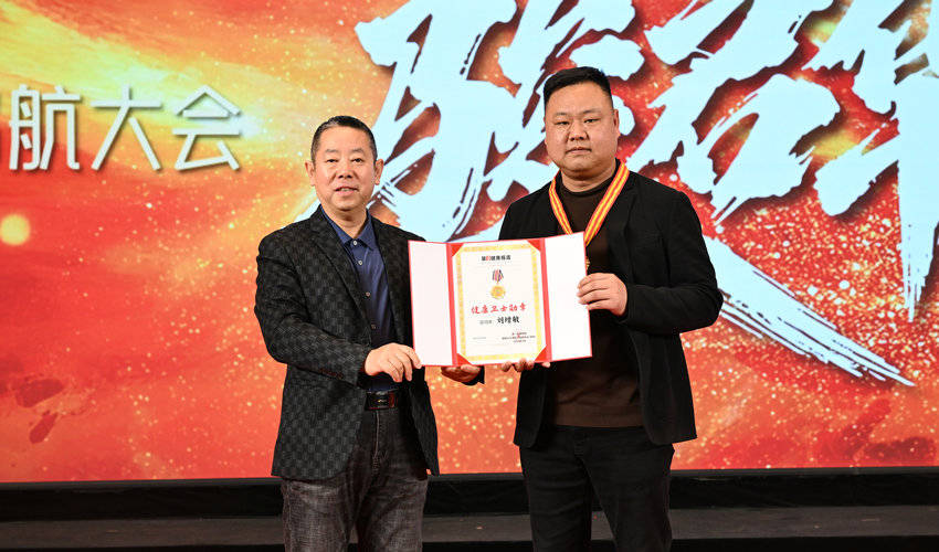 2月26日,在杏林之路2026业务精英启航大会上,第一健康报道总编辑李达为山东歆悦药业有限公司董事长刘增敏颁授“第一健康报道健康卫士勋章”,以表彰他在推广传承中医药适宜技术特别是在中医贴敷技术方面的创新与实践。