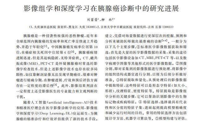 [1]刘蓄蕾,影像组学和深度学习在胰腺癌诊断中的研究进展,大庆油田总医院 ,2024-06