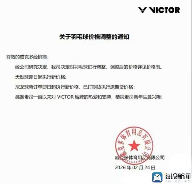近日,威克多亚狮龙等多个主流品牌相继发布降价通知,多款主流品牌羽毛球成交价持续下行,结束了2022年至2025年的连续涨价周期。