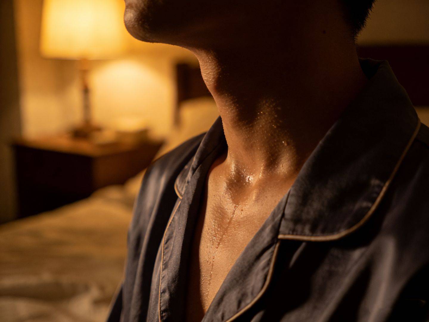 湿热内蕴型——嗜食辛辣油腻、饮食不节导致湿热蕴结脾胃,湿热之气上蒸,逼迫津液外泄。这类人夜间出汗多黏腻,脖子处尤为明显,常伴有口苦口臭、胸闷腹胀、大便黏滞等表现。