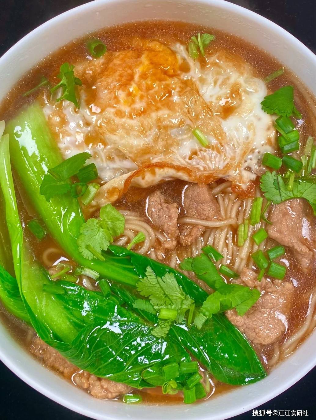 用少量的瘦肉丝提供优质蛋白和铁质,维持肌肉力量和气血充足。再煎上一个荷包蛋,蛋白质结构更完整。这样一碗面,有主食、有蔬菜、有蛋白质,营养结构合理,能为上午的活动提供持续数小时的能量。