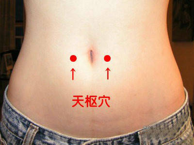 天枢是胃经上的一大要穴。位于肚脐旁2寸处,与肚脐同处于一条水平直线上,左右各有一穴。