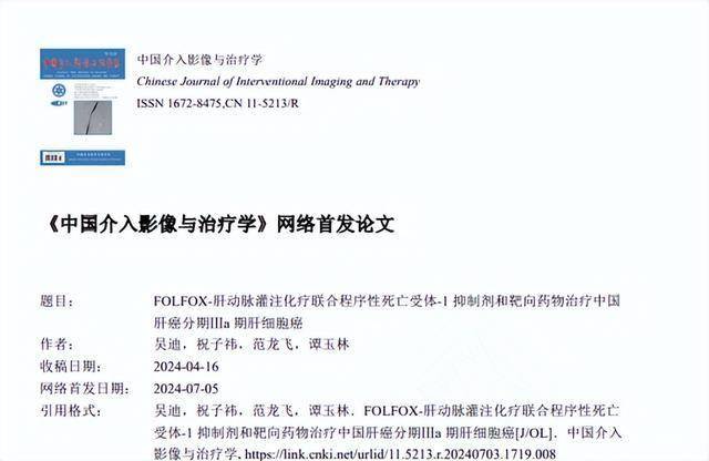 吴迪.FOLFOX-肝动脉灌注化疗联合程序性死亡受体-1抑制剂和靶向药物治疗中国肝癌分期Ⅲa 期肝细胞癌,2024-07-05