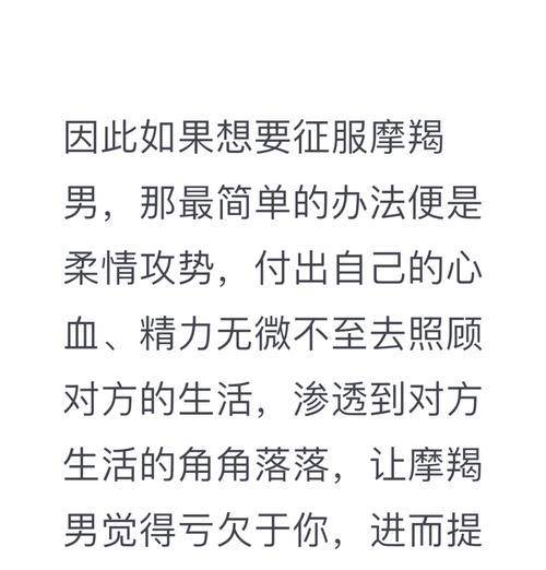 每个女人都想拥有一个爱自己的男人,但有时候男人并不会轻易被征服。如果你想让他爱上你并追求你,那么你需要掌握一些技巧来征服他的心。在本文中,我们将探讨如何迅速征服一个男人。