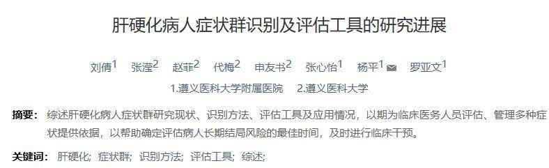 [1]刘倩,张滢,赵菲,等.肝硬化病人症状群识别及评估工具的研究进展[J].护理研究,2024