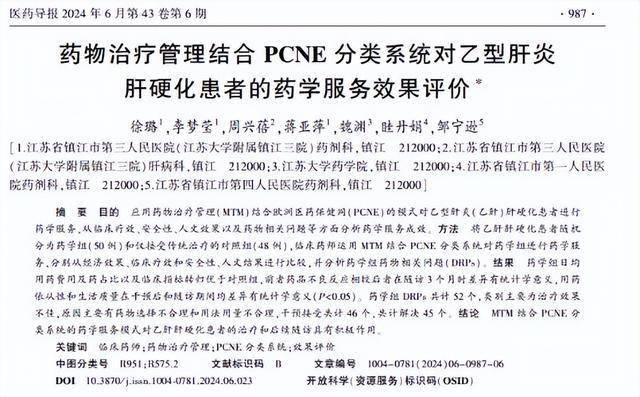[1]徐璐.药物治疗管理结合PCNE分类系统对乙型肝炎肝硬化患者的药学服务效果评价,医药导报,2024-06-01