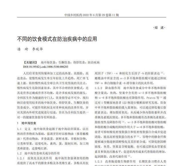 [1]潘琦,李琰华.不同的饮食模式在防治疾病中的应用[J].中国乡村医药,2022,29(11):72-76.