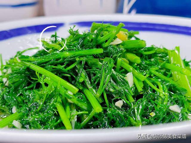 2、炒香丝菜时,一定要多放一点蒜,蒜放少了,香丝菜只有茴香的香味,没有蒜的香味,蒜香和茴香两种香味结合在一起,才能使这道菜更好吃。