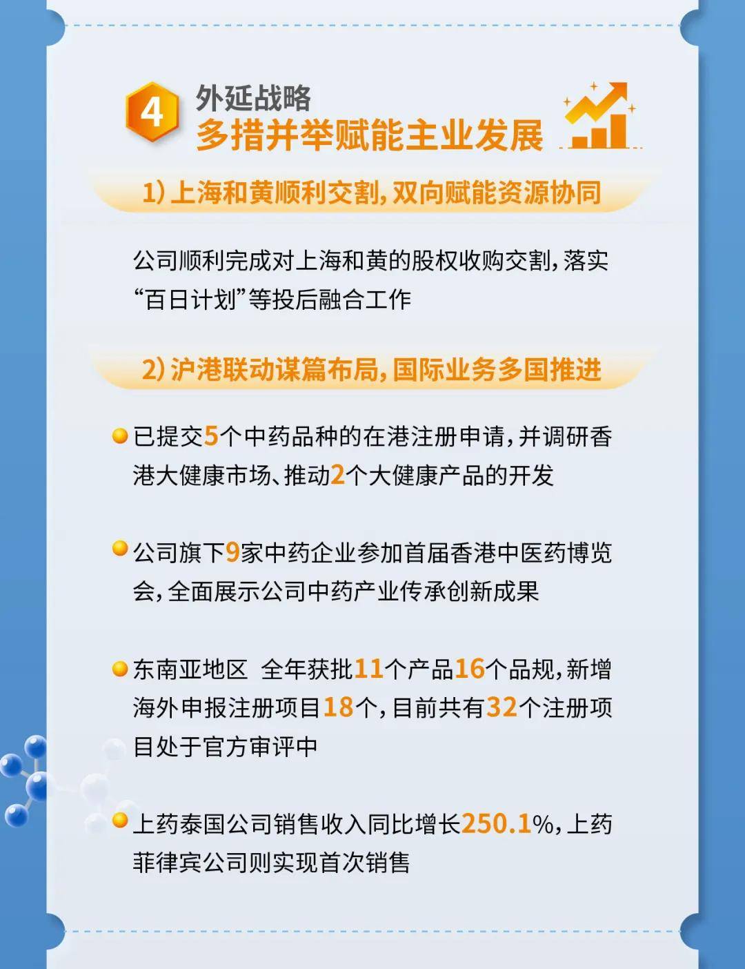 海外市场拓展方面,东南亚地区全年获批11个产品16个品规,新增18个海外注册申报项目,32个项目处于审评阶段;上药泰国公司销售收入同比增长250.1%,上药菲律宾公司实现首次销售,东南亚及中东市场布局持续完善。