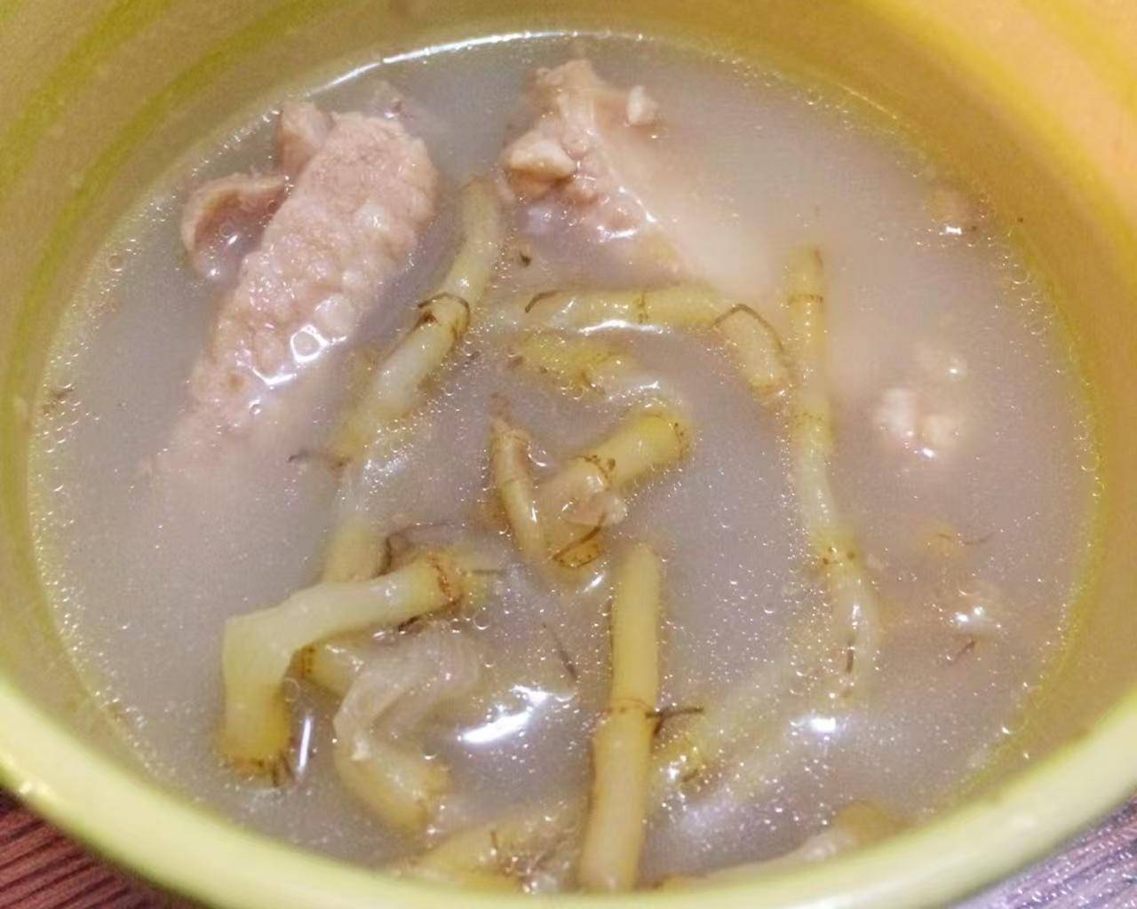 4、将鱼腥草放进去,与汤汁拌匀了,再煮二十分钟左右,最后可以灵活调一些盐到里边,即可关火。清润可口,健康又营养。
