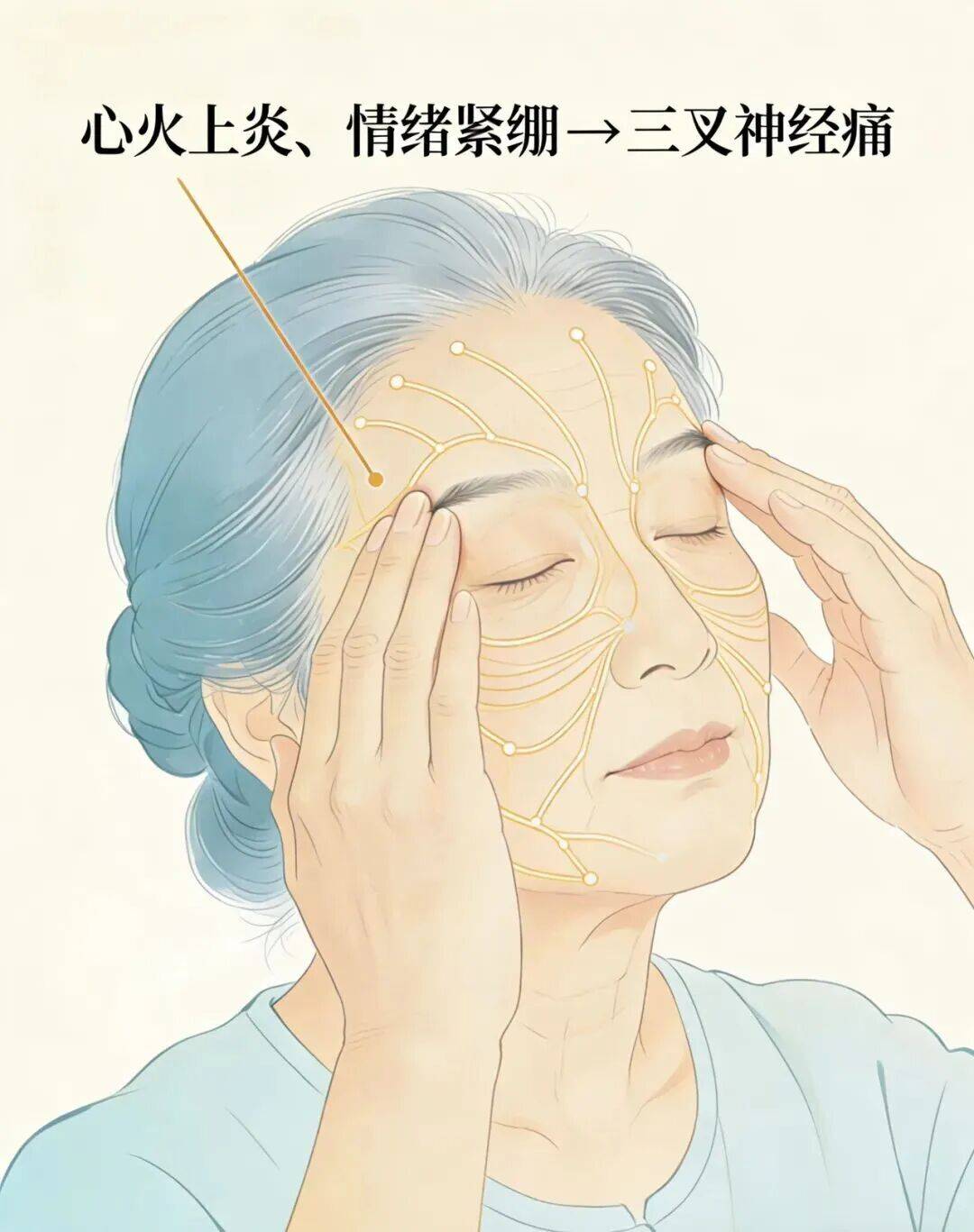 三叉神经分布在脸、头、眉、牙、鼻翼,都是最容易“绷着”的地方。