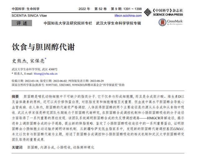 [1]史熊杰,宋保亮.饮食与胆固醇代谢[J].中国科学:生命科学,2022